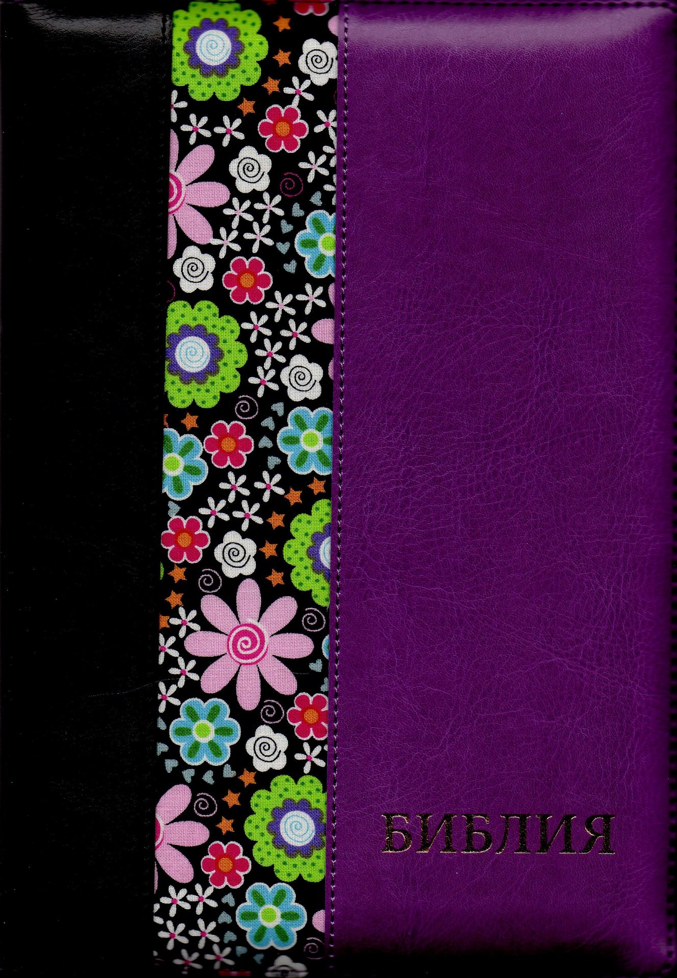 Біблія чорно-бузкова, на блискавці, білий зріз з індексами. Паралельні місця в середині.Синодальний переклад.