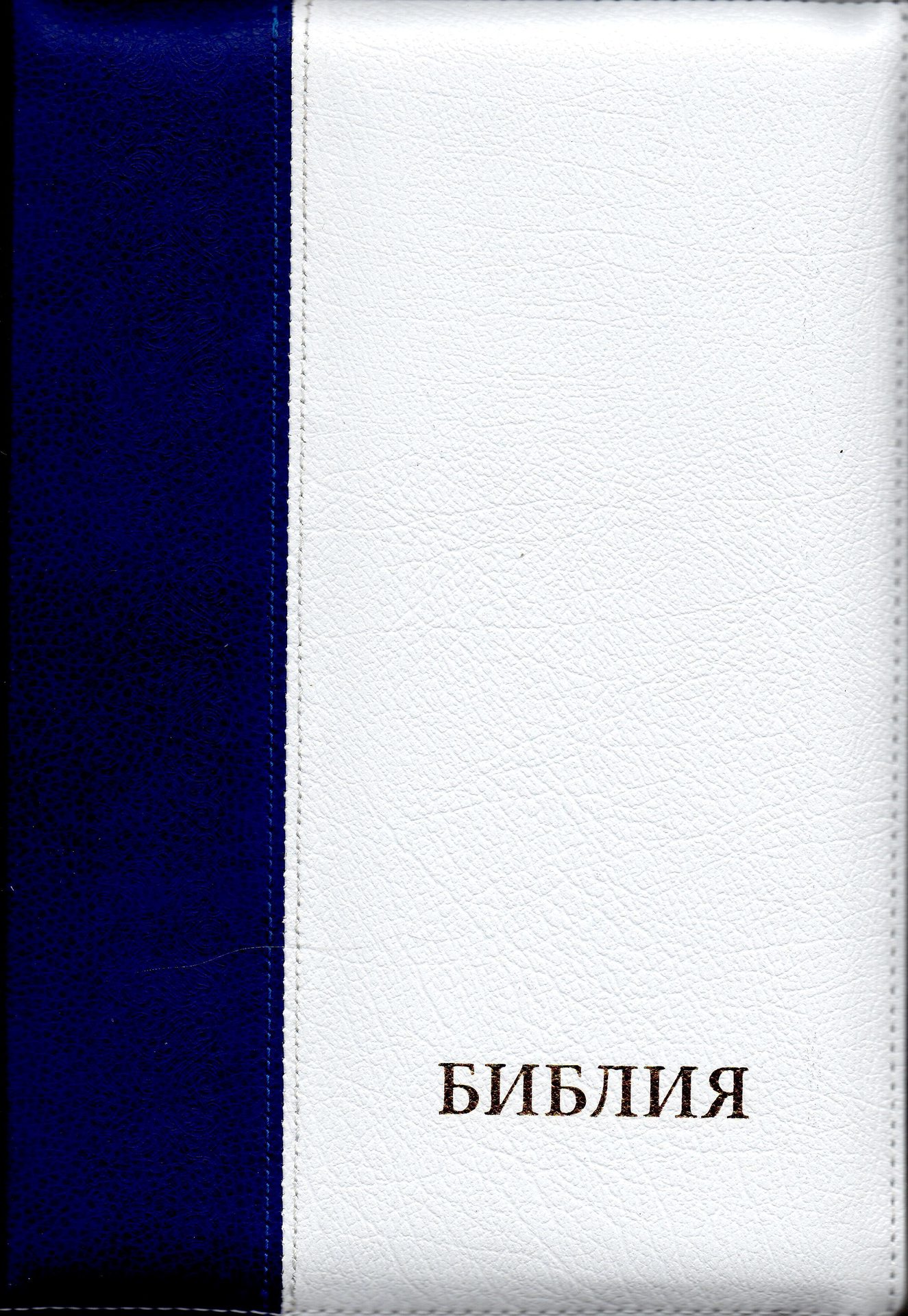 Біблія біло-синя, на блискавці, білий зріз з індексами. Паралельні місця у середині. Шкіра. Синодальний переклад.