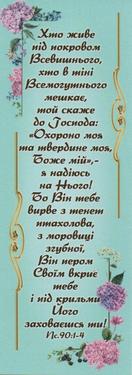 1. Хто живе під покровом Всевишнього, хто в тіні Всемогутнього мешкає, той скаже до Господа: Охорона моя та твердині моя, Боже мій, я надіюсь на Нього!