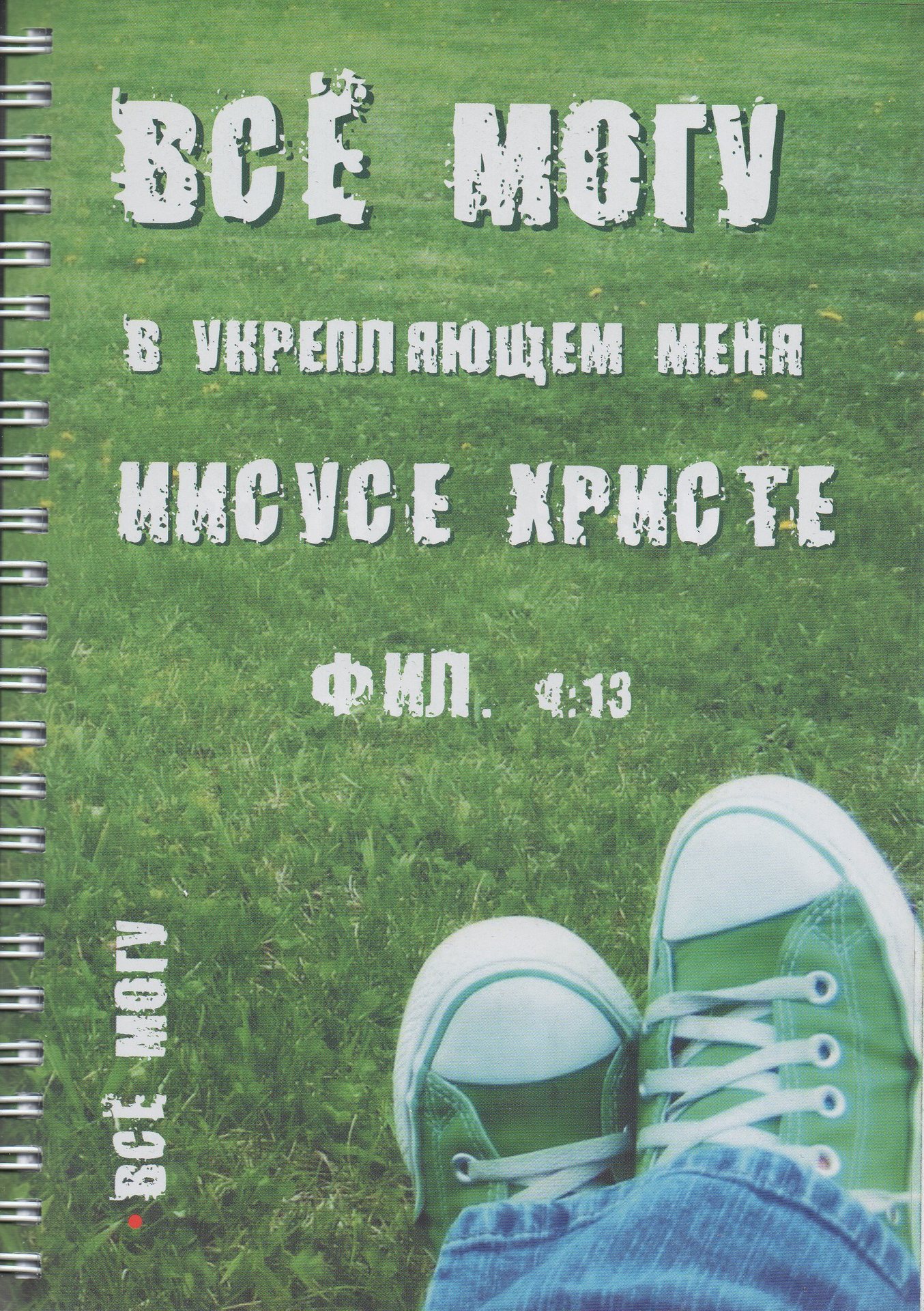 Блокнот "Все можу в зміцнюючому мене Ісусі Христі.". 45 стор. м'яка обкладинка, на пружині. Розміри (формат): 21x15 см